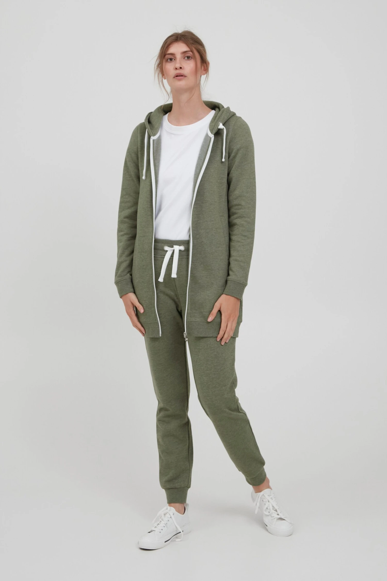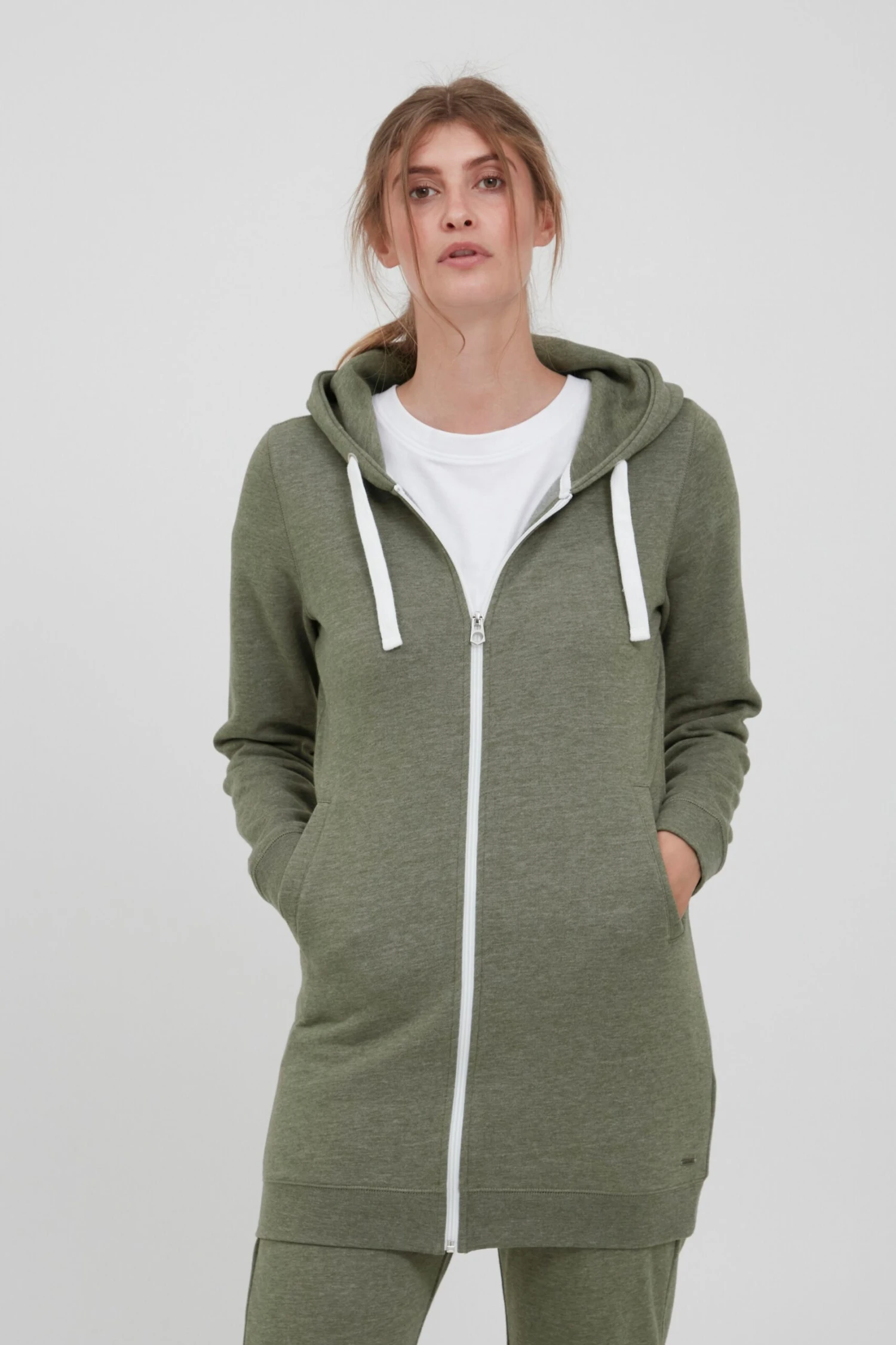 OXMO Sweatjacken Kapuzensweatjacke Olinda Frauen Grünmeliert